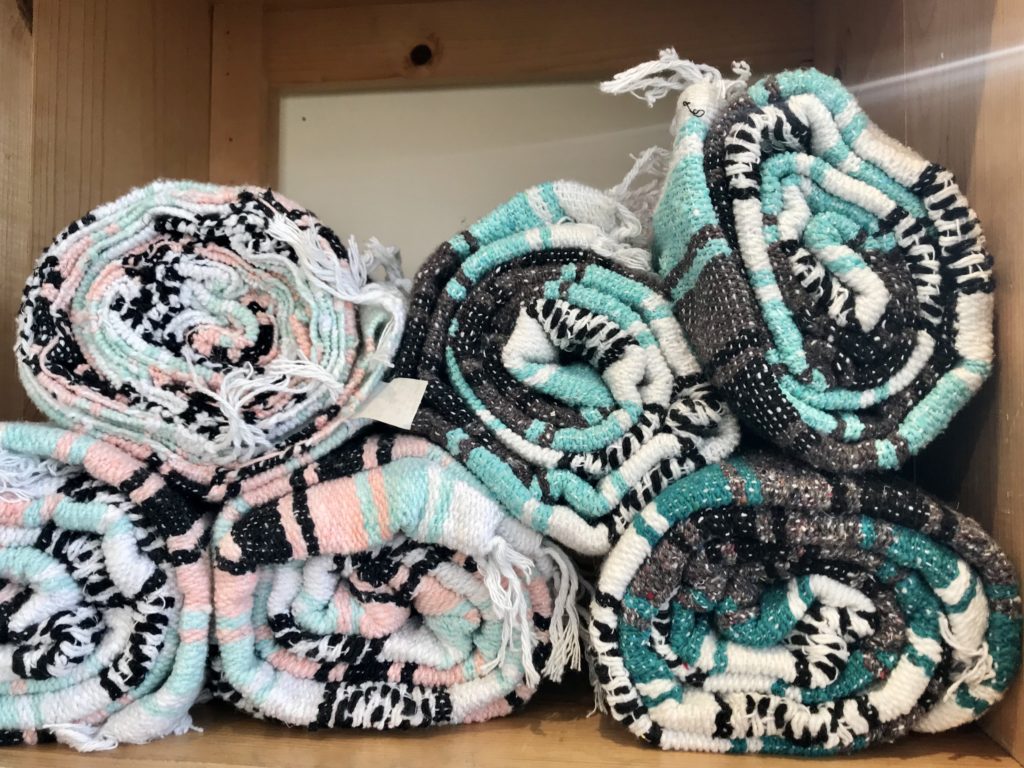 Colorful, cozy throw: This pretty blanket is woven in Rosarito, Mexico. It provides a flexible employment opportunity for women whose caretaking responsibilities limit their ability to work. $29, Flourish, 5 Fourth St., Petaluma, 707-971-7666, flourishbayarea.com