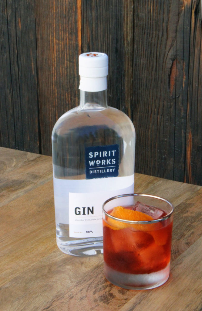 Negroni recipes can be found on Spirit Works’ website. Co-owner Ashby Marshall also recommends two variations on the classic. The first features one part Campari, one part Spirit Works Gin and one part Spirit Works Sloe Gin – substituting Sloe Gin for the vermouth. The second, a staff favorite, is a Negroni made with Spirit Works Barrel Gin. “The candied lemon and orange that comes through with the barrel aging process blends incredibly well with Campari,” says Marshall.