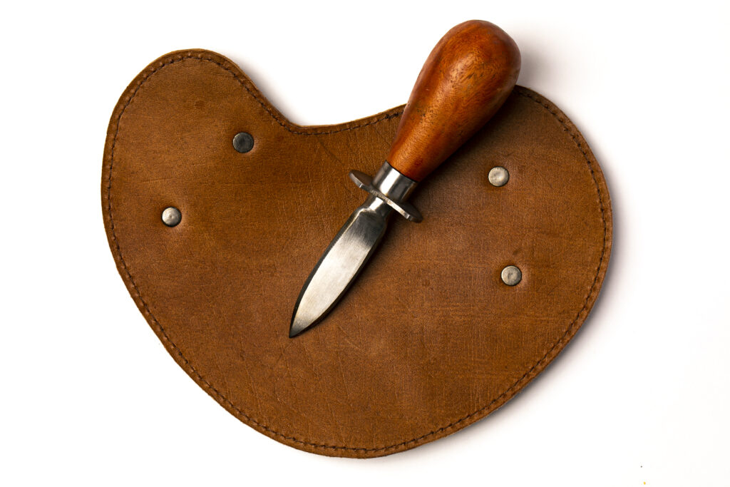 Buffalo-Leather Oyster Mitt And Knife Set $68 / At Artefact Design & Salvage, Sonoma / 707-933-0660 / artefactdesignsalvage.com