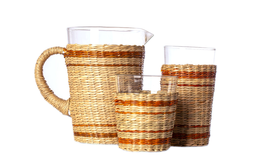 Wicker Pitcher and Glasses $12-35 / At Olive + Rose, Santa Rosa / 707-919-3072 / oliveandrosestudio.com