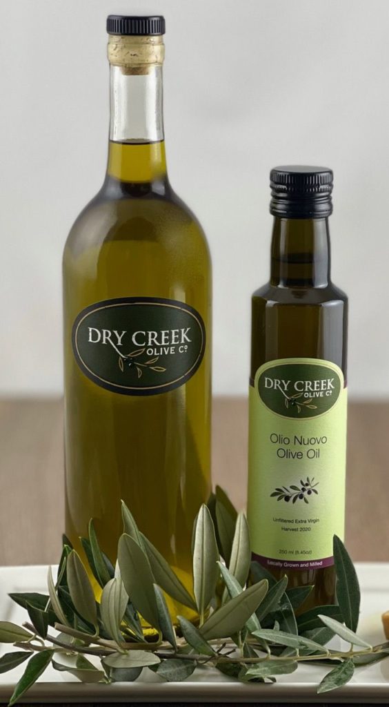Dry Creek Olive Company bottles more than a dozen olive oils. The Olio Nuovo ($23 for 250 ml) is the first release of the most recent harvest. This year's blend combines Spanish Manzanilla olives with four Tuscan varieties, including Frantoio, Leccino, Pendolino, and Maurino. The Home Chef's Blend ($48 for 750ml) is an everyday olive oil only available a few times a year. (Courtesy Dry Creek Olive Company)
