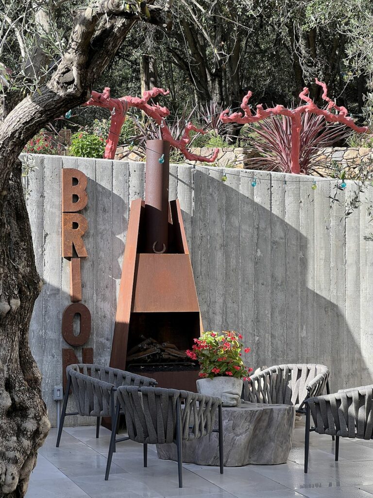Tastings on the outdoor patio at Brion are limited and by reservation only. Arrangements can be made to taste wines from Sonoma County’s B. Wise Vineyards, also founded and owned by Brion Wise. (Courtesy of Dana Rebmann)