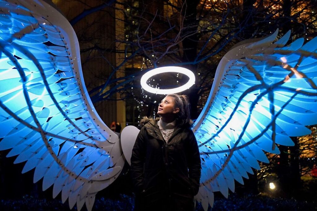 The Napa Lighted Art Festival features eight lighted art installations; interactive pieces like Angels of Freedom from OGE Group offers festival-goers fun photo opportunities. (Courtesy of DoNapa)