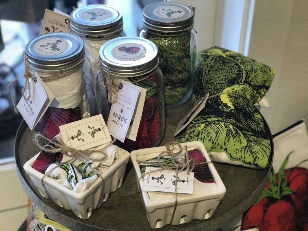 Harness that harvest: Celebrate your fruit stand haul by preserving it. Fill this mason jar with sumptuous homemade sauce from, say, fresh Sonoma tomatoes. Inside the jar is an apron with a botanical print and pun-y line (lettuce eat) to get you feeling herbivoracious. The berry basket comes with a pun-y, farm-y hand towel.