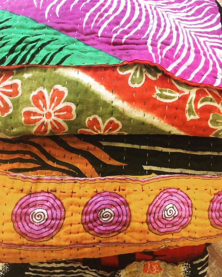 Plot your picnic spot: Create a cozy spot for a picnic with this Kantha blanket, a Fair Trade product made in India in the traditional practice of quilting recycled materials. In this case, these quilts were repurposed from Saris.