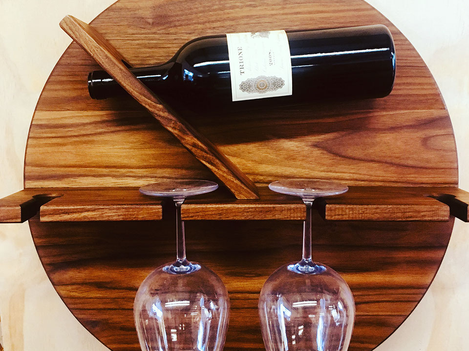 Drink Keeper: You work hard keeping things organized and orderly for your home. Don't forget to organize the fun stuff. This good looking wine rack gives stylish organization and focus to your bottle and stemware. Sonoma Woodworks' creations, from furniture to cutting boards, are built from salvaged trees and retired wine barrels.