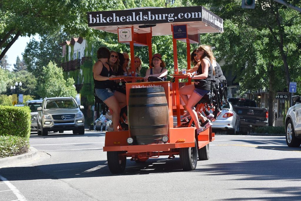 Bike Healdsburg: The Wine & Nibbles tours have a way of turning heads when they roll through town. Available for private groups of six to 12 people, they can be booked in the morning, midday, or afternoon. The tour stops at three wineries and last three to three-and-a-half hours. $119 per person all-inclusive for six to nine people. $99 per person for 10-12 people. Masks must be worn when not eating or drinking. (Courtesy of Bike Healdsburg)
