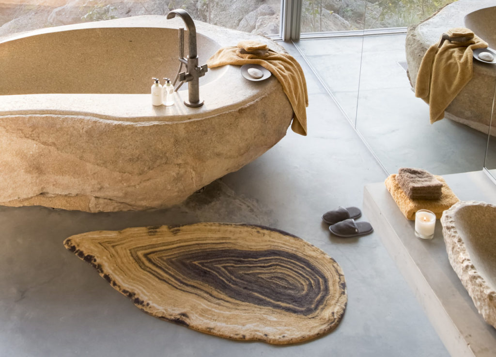 Imitate nature: Create calmness in your bathroom by bringing in design that draws from nature. The pattern on this bath mat appears to imitate rings of wood. Made in Portugal. (Courtesy photo). $322, Sonoma County Bath Works, 9240 Old Redwood Highway #118, Windsor, Ca 707-620-0550, sonomacountybathworks.com