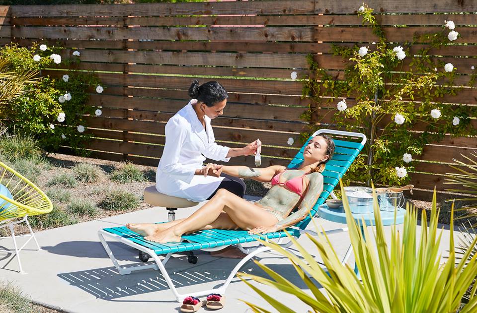 The Watsu Pool, naturally heated to 98 degrees, is surrounded by palm trees with a trickling water fountain nearby for ultimate tropical relaxation. Then there’s the 92-degree Spa Pool shaded by redwoods and the indoor Roman-style bathhouse, featuring two mineral water soaking pools, an exfoliating shower, halotherapy sauna and an aromatherapy steam room.