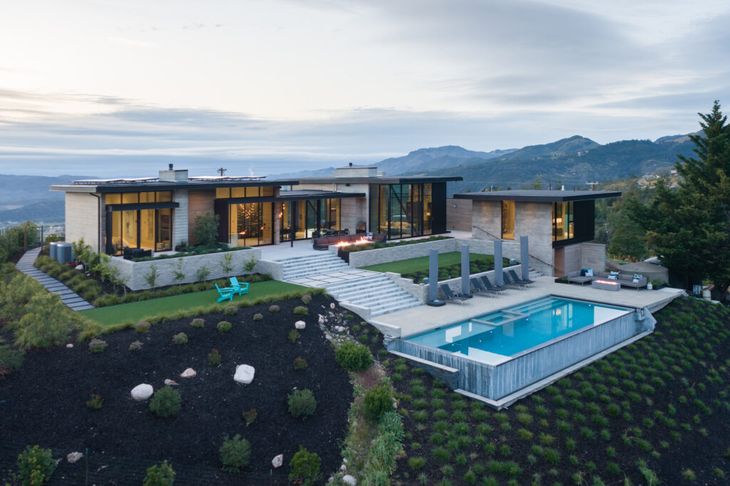 Other amenities that suit modern tastes include a 444-bottle, climate-controlled wine room, two gas fire pits, a hot tub and solar panels.