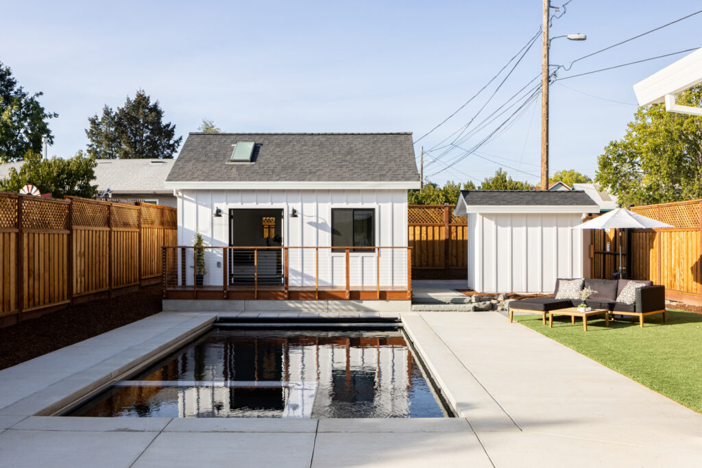 The property also comes with a black-bottom pool with an infinity edge and an in-demand ADU (accessory dwelling unit) in the backyard; an attractive new building with a kitchen, bath and bedroom that can serve as added living space and office, or a home for a relative or tenant.