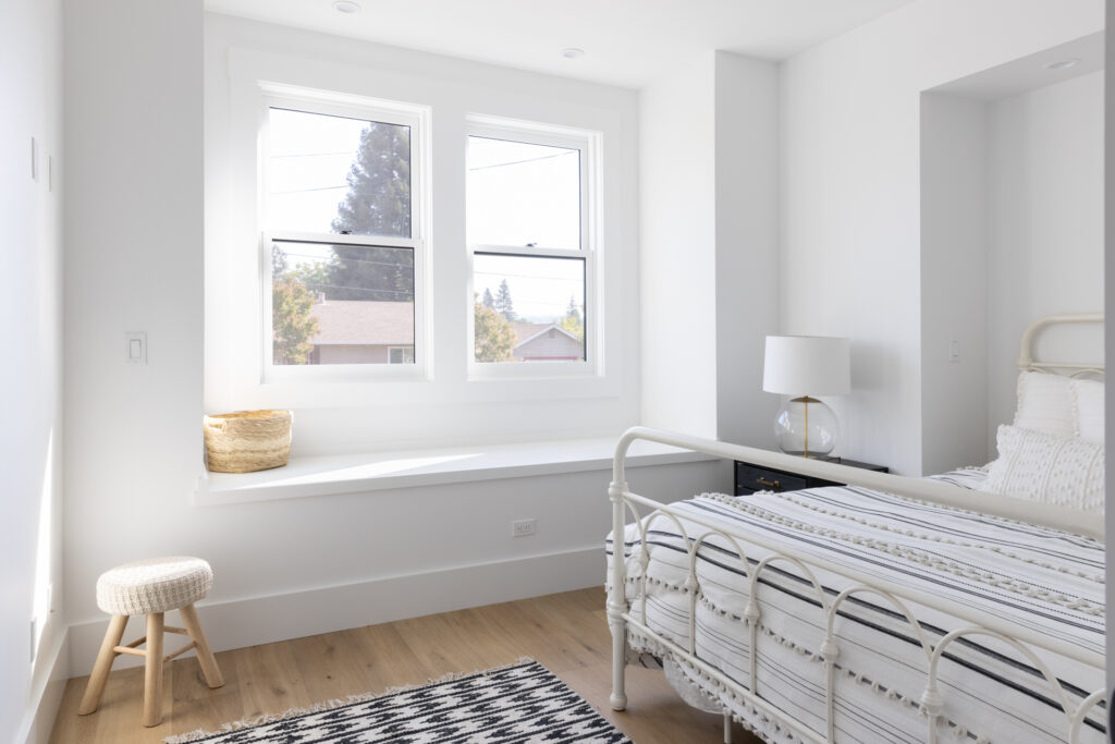The street-facing part of the 4-bed, 4-bath home, formerly a living room, has been converted into two bedrooms with bay windows to slightly expand the living space, without increasing the size of the home into the front yard, something which is regulated by local zoning laws.