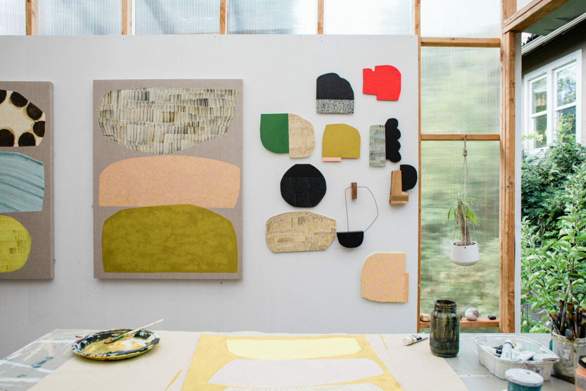 In January 2020, Pochan started building Martin’s art studio. “And a few weeks later, we went into lockdown,” she says, standing in the middle of her 16-by-16-foot space. Beside her, the tallest wall is hung with a few of her latest paintings from a recent exhibit at nearby Legion Projects. “The timing was very fortuitous, otherwise I wouldn’t have been able to work on my art.”
