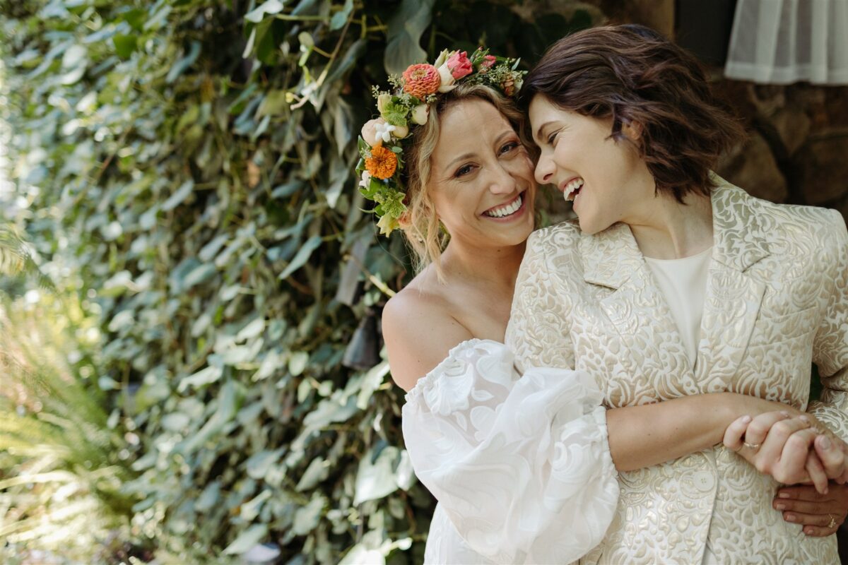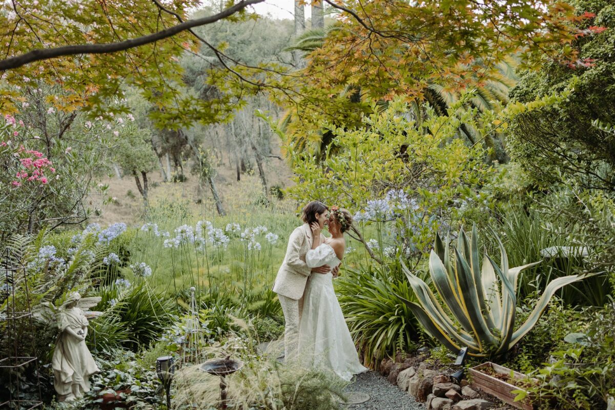 “It’s open to anyone to flip the script when it comes to planning your wedding, but it’s certainly easier when you’re a queer couple, because there is no script,” says Lily Alberts, who married Aleah Wattenberg last July at Pythian House Cottage, a secluded, wildflower-filled sanctuary in the hills east of Santa Rosa.