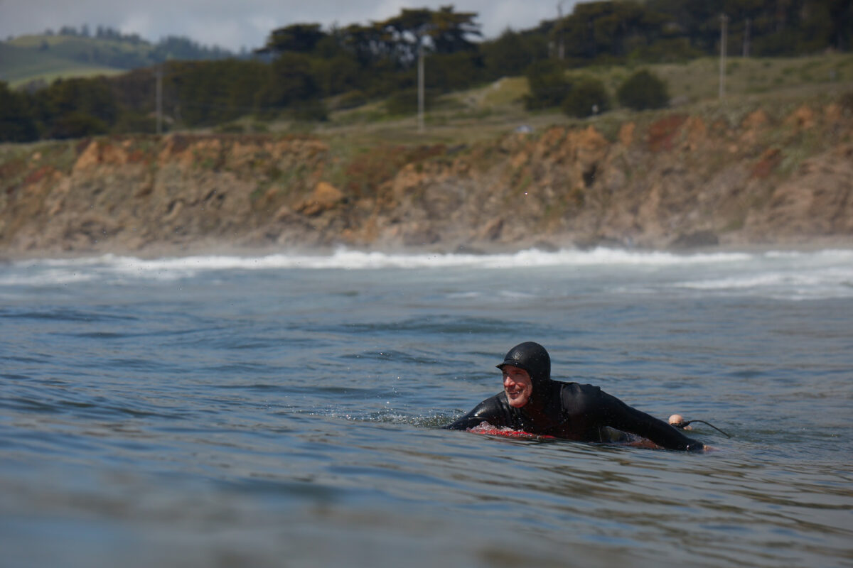 William Beal, better known up and down the North Coast as Billy Blaze, spent a decade on the North Shore of Oahu learning to ride big waves. That pedigree was evident during this session at “Salmon,” two miles north of Bodega Bay. The tight-end-sized 54-year-old—he stands at 6-foot-4, 220 pounds—was fluid, unhurried, supremely confident as he carved the faces of wave after head-high wave.
