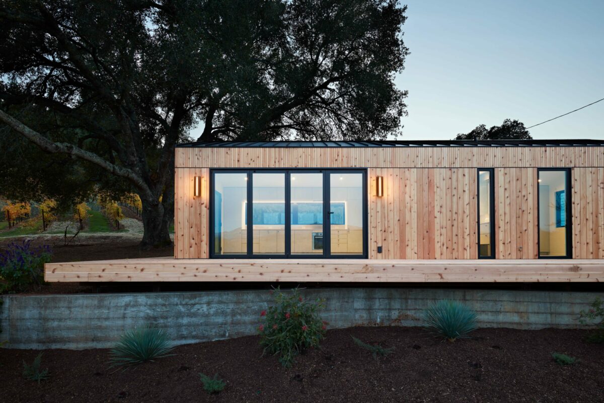 Realizing she needed more space to house her family in her Healdsburg home, Scharf contacted Abodu, a Bay Area purveyor of manufactured ADUs. The company provides services “from blueprint to delivery” and specializes in backyard units that can house grandparents, adult children or tenants, or serve as an office, fitness studio or pool house.