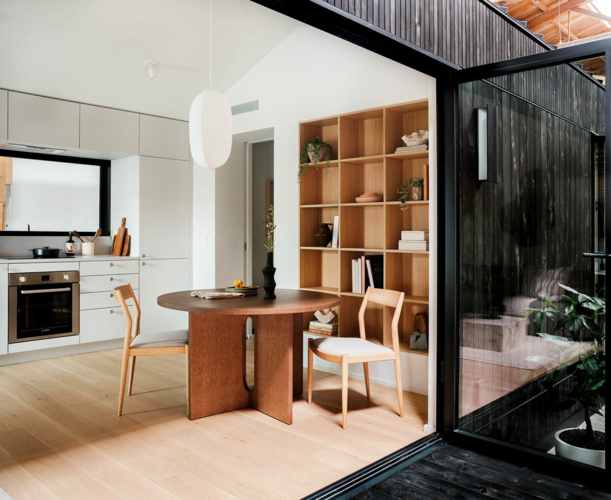 Scharf settled on the Dwell House, an ADU conceived by Dwell magazine, designed by Danish firm Norm Architects and constructed and installed by Abodu. Marketed as “California meets Copenhagen,” the 540-square-foot, one-bedroom unit has a minimalist Scandinavian style with vertical cedar siding and a 12-foot-wide folding glass wall. The tiny home, which is customizable, starts at $389,000.
