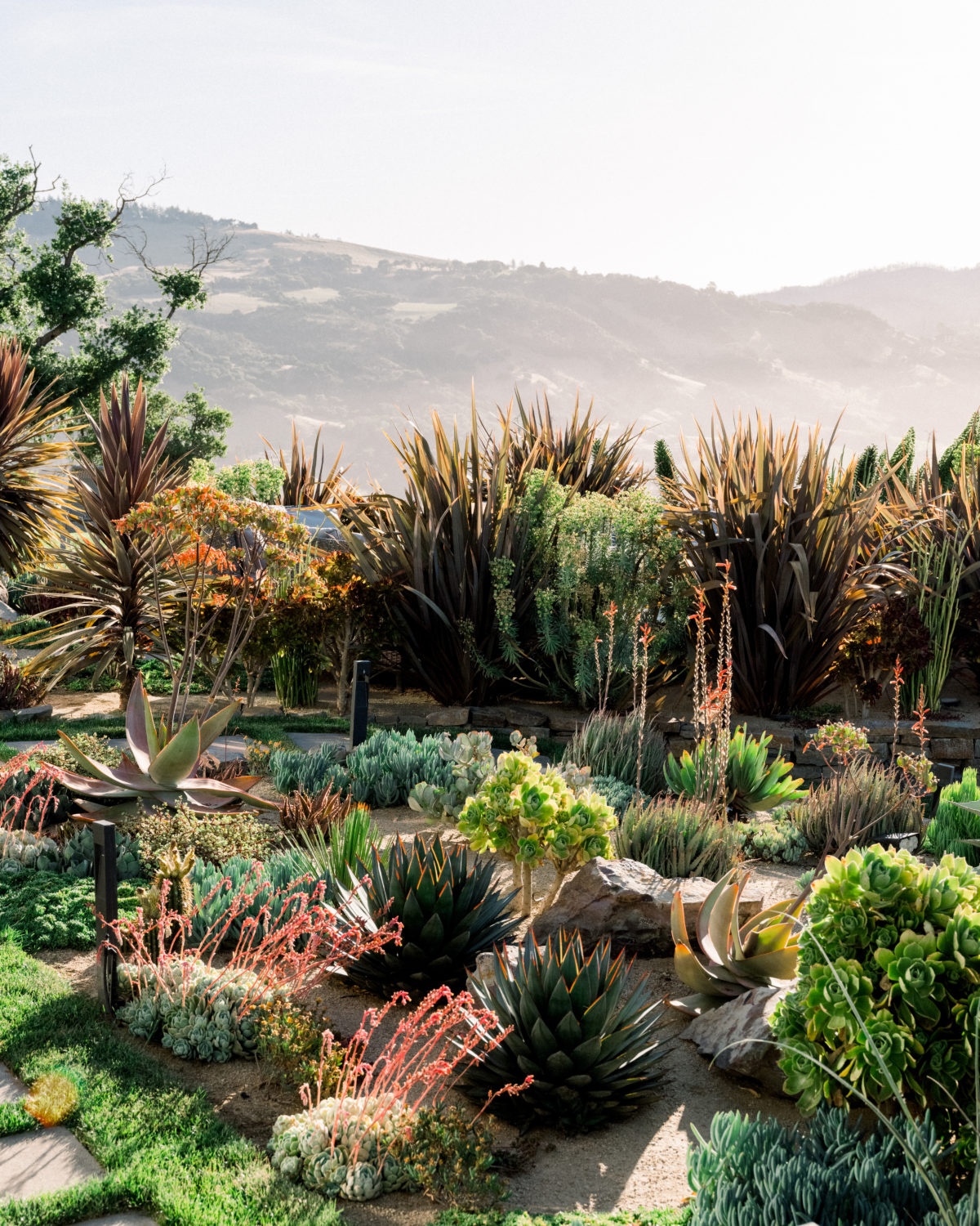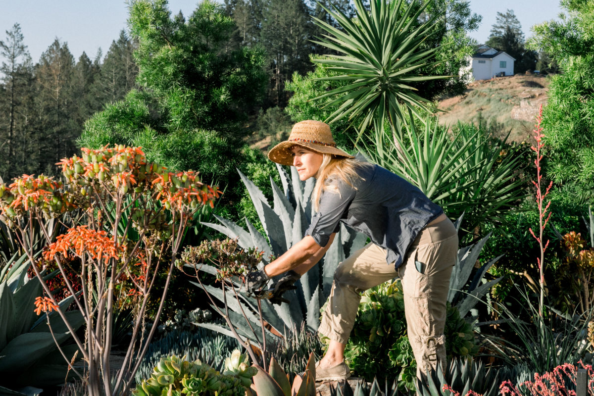 Rebuilding with succulents offered the couple the chance to be more water-wise — and to build a stronger defense against future fires. A firefighter from Geyserville who helped save the home in 2017, and whom Lisa later tracked down to thank, told them that during the firefight, the original wood mulch had caught on fire. “He said the mulch was like lighter fluid, and that was what caused a lot of our damage. So it was, like, ‘I’m never putting mulch back down,’” says Lisa.