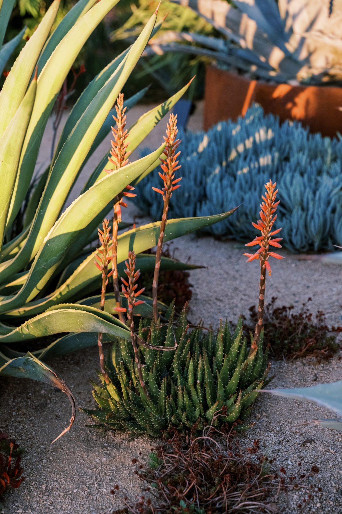 They orchestrated the design so there is something in bloom all through spring and summer. From February through April there are the coral and blue elf aloe, Echeveria, and kangaroo paws, followed in May and June by lady’s slippers, cannas, and red yucca. By July and August, there are fewer blooms, but the garden retains interest with a variety of shapes and colors.