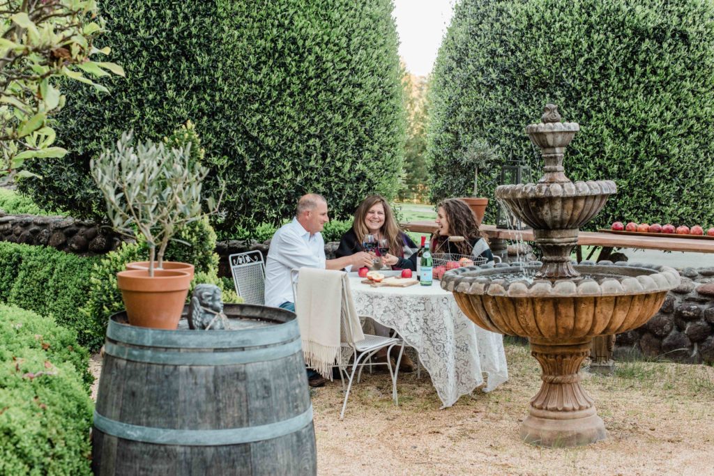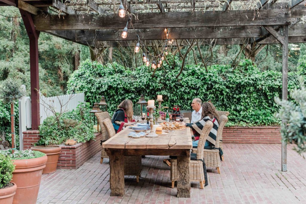 Over the years, this has included renovating the kitchen and bathrooms and laying new floors throughout the home, both oak planks and antique tiles from a monastery in Italy. Upstairs, a soaking tub now sits in the bay window that looks out over the fields and redwoods. And the kitchen’s layout leaves plenty of space for visiting with friends when the two are not busy with the business. Steak, risotto and greens are specialties, along with wine and big platters of Italian-style cured meats served by a fire. “We stretch the dinners out,” Barbara says. “Just the charcuterie can be a two-hour event.”