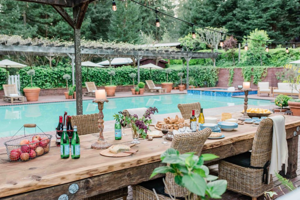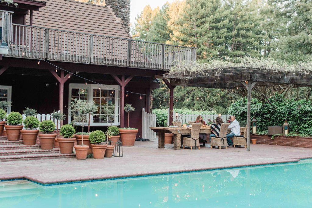 Rosemary and potted olive trees dot the property. The forget-me-nots and wisteria of spring give way to roses and long summer days spent around the pool.