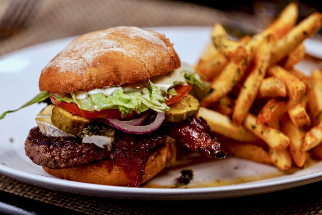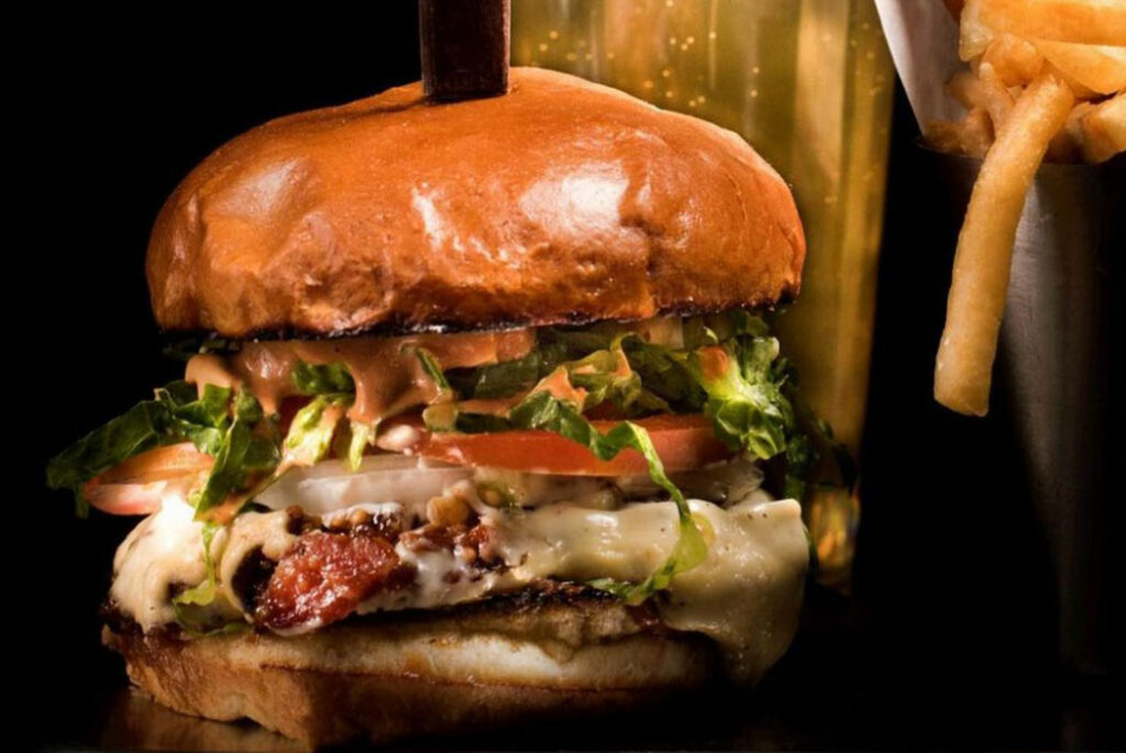 Stark's Steak and Seafood: The Stark Standard is a half-pounder with smoked bacon, peppercorn salsa verde and Cambozola. Add-ons, including onion rings, a truffled sunny-side-up egg and steak sauce, make it yours. 521 Adams St., Santa Rosa, 707-546-5100, starkrestaurants.com. (Courtesy of Stark's Steak and Seafood)