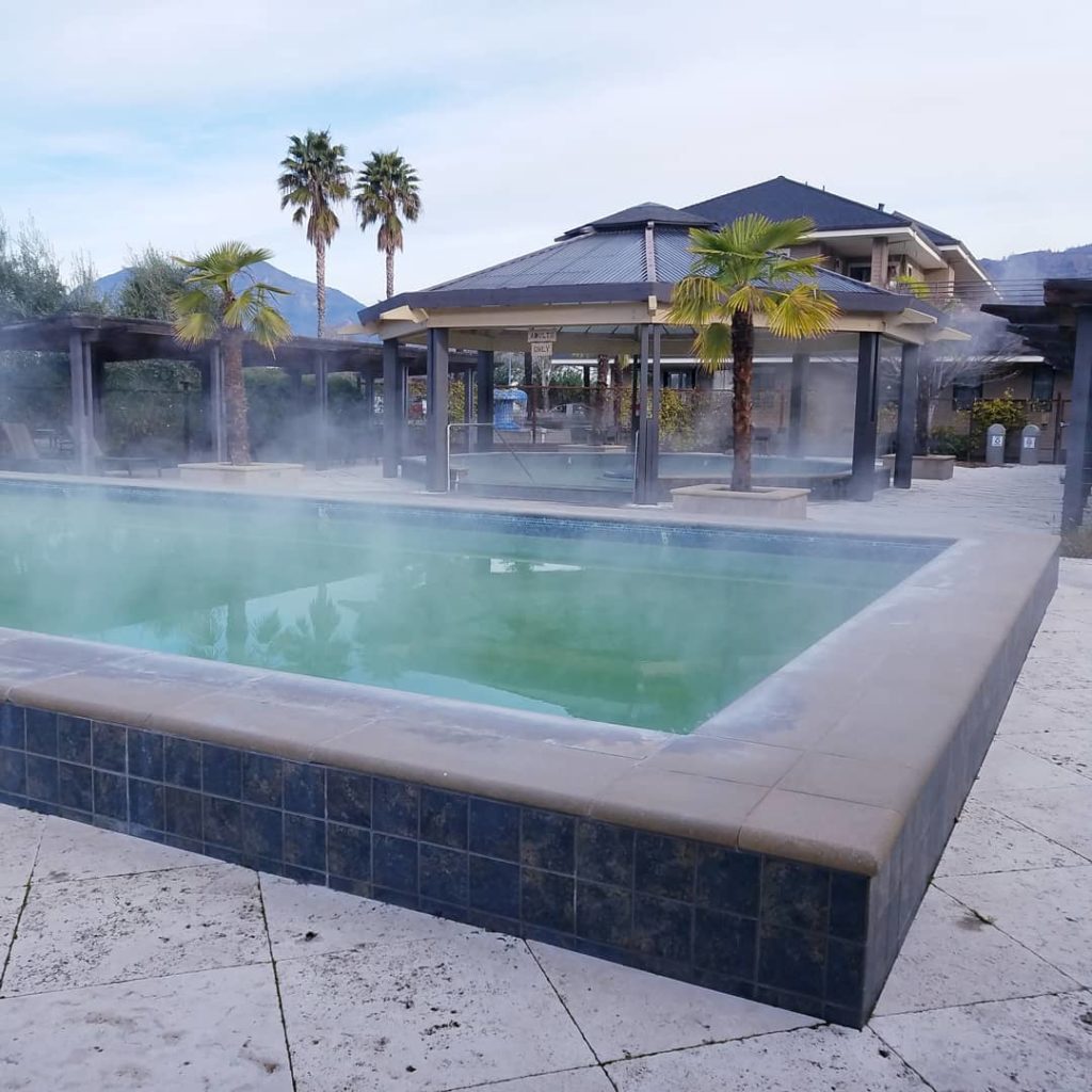 Calistoga Motor Lodge and Spa, Calistoga: Three geothermal mineral pools are fed from hot springs below the motor lodge’s grounds. Spa day guests get access to the pools for up to two hours before or after a treatment. Moonacre Spa is currently welcoming day guests on Friday and Sunday, and starting August 1, Monday and Thursday as well. 1880 Lincoln Avenue, Calistoga, 707-942-0991, calistogamotorlodgeandspa.com (Courtesy of Calistoga Motor Lodge and Spa)
