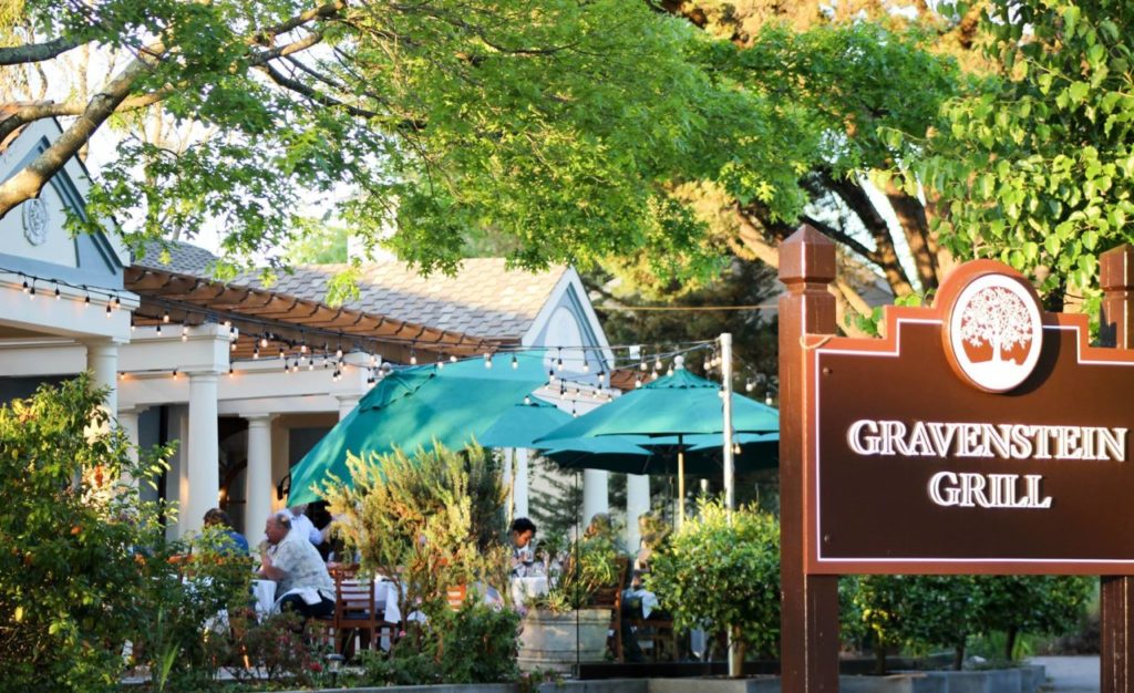 Gravenstein Grill, Sebastopol: Out front of this upscale restaurant, with large Roman columns, is a stone patio with white tablecloth-lined tables surrounded by lush gardens. 8050 Bodega Ave., Sebastopol, 707-634-6142.