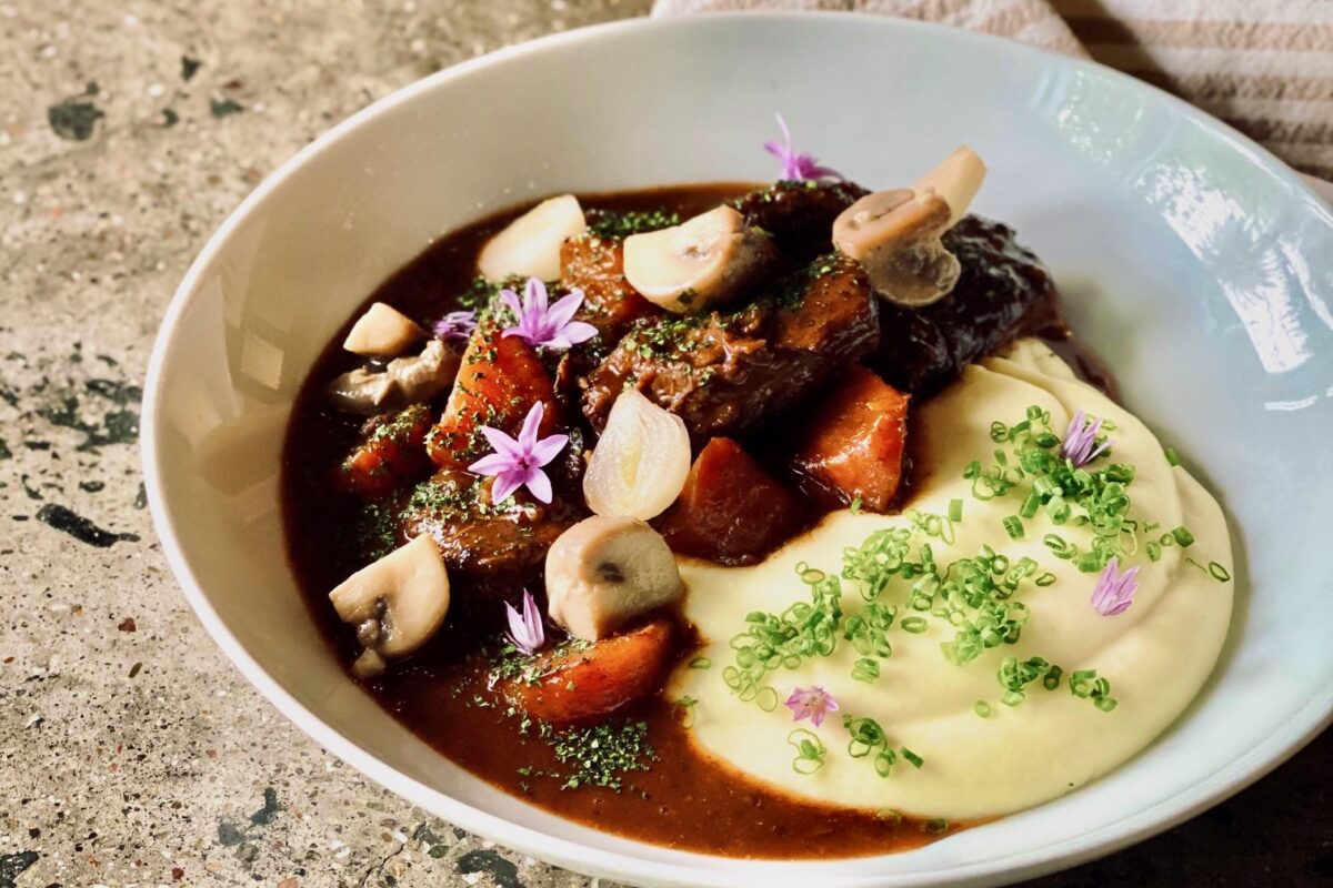 Pommes Puree, Barndiva: These fancy mashed potatoes are mostly butter with a hint of potato, which is not a bad thing. Comfort food defined. Here, with boeuf bourguignon. 231 Center St., Healdsburg, 707-431-0100, barndiva.com. (Courtesy of Barndiva)