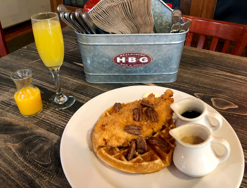 Healdsburg Bar & Grill, located on the corner of Healdsburg Plaza, offers weekend brunch with bottomless mimosas. Brunch on the patio (warmed by space heaters on cold mornings) and pair your mimosa with smoked pork hash with poached egg and gravy on top of a Costeaux Bakery English muffin. If you'd like to spice up your morning, there are also bottomless Bloody Marys on the menu. 245 Healdsburg Ave, Healdsburg, 707-433-3333.