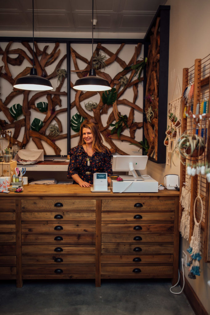 Parker backs the sunny vibe with some serious design and maker chops (check out her Instagram). With a formal background in architectural drafting, paired with a love of interior design, Parker says she applies all her skills at BOHO Bungalow. She makes candles scented from the “notes” of different strains of marijuana, original graphic tees or “merch” celebrating the local vibe, and her own line of modern jewelry.