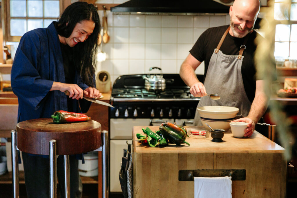 Chang and his husband Chris Lewis hosted a virtual dumpling cooking class at their Occidental home that raised $1,800. Instagram @mori.house.