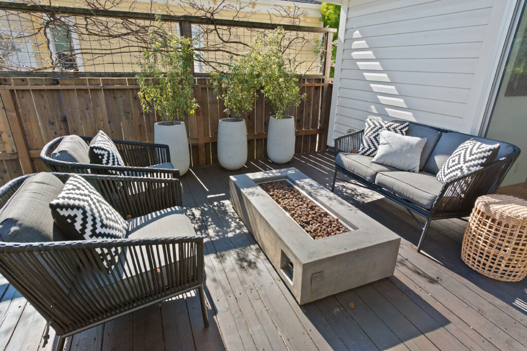 A porch swing, for example, is a spot where the homeowners, Karen and Todd Reul, would sip wine and get to know neighbors passing by their house. The kitchen, called “a masterwork” by realtor Pam Buda, has ample room for food prep and an eat-in counter for entertaining guests. Raised beds for gardening and glass Bonelli doors remind inhabitants that life should take place both indoors and outdoors. The outdoor fire pit and seating area add to this vibe.