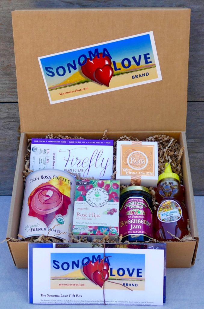 For the Sonoma lover: This Sonoma Love Box is assembled in Cloverdale and features Sonoma-made coffee, tea, soap, jam, goat milk soap and chocolate. $49.95, Sonoma Love Box, 415-637-5497, sonomalovebox.com