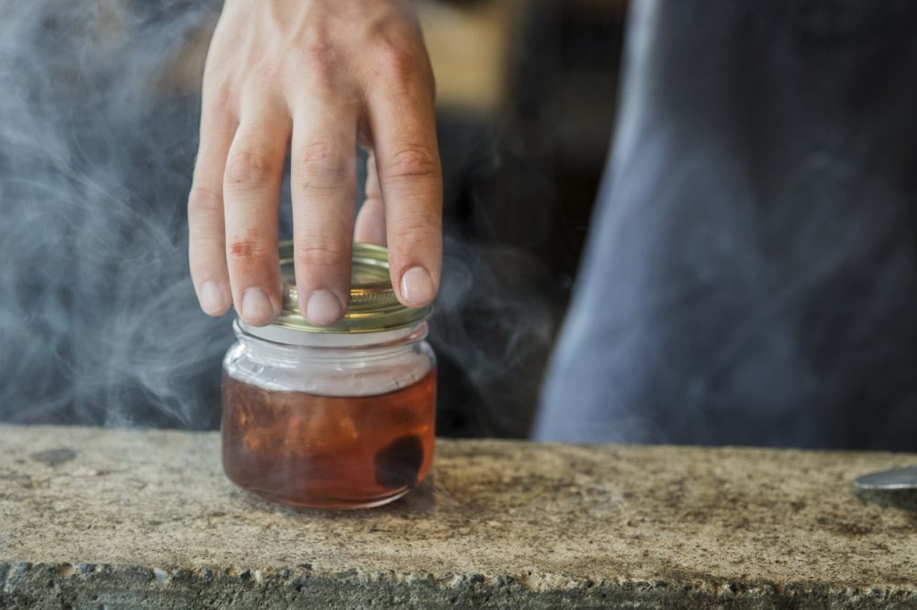 The experimental cocktails feature new interpretations of old-school classics, such as a Smoked Old Fashioned (Bacon fat washed Old Forester bourbon, Jerry Thomas bitters, maple syrup, Applewood smoke), a White Manhattan (Slow Hand white whiskey, Lo-Fi sweet and dry vermouth, Seven Stills Cocktails bitters), and a Carbonated Whiskey Sour (Elijah Craig small batch bourbon, simple syrup, clarified lemon juice, C02).