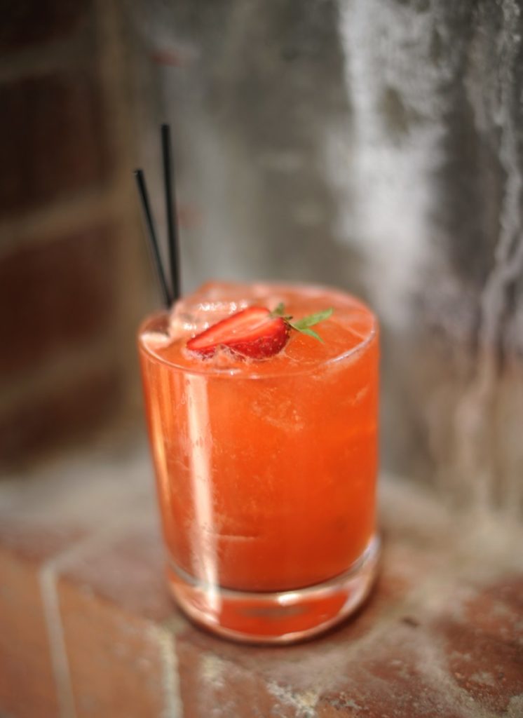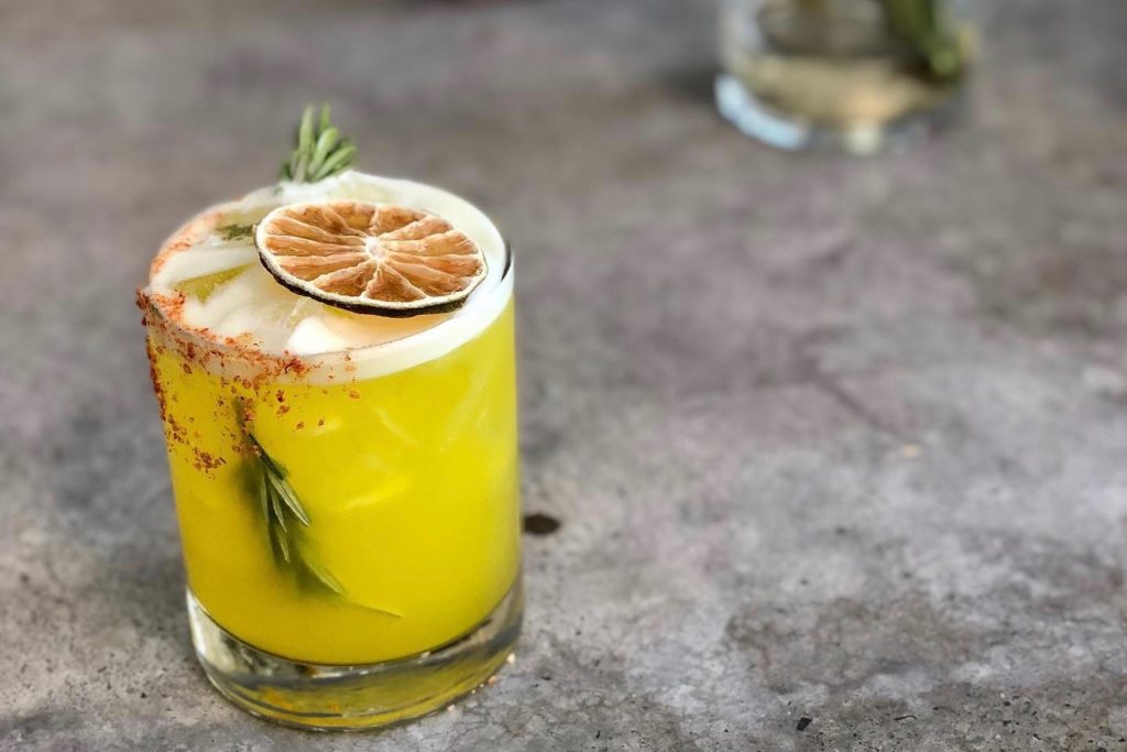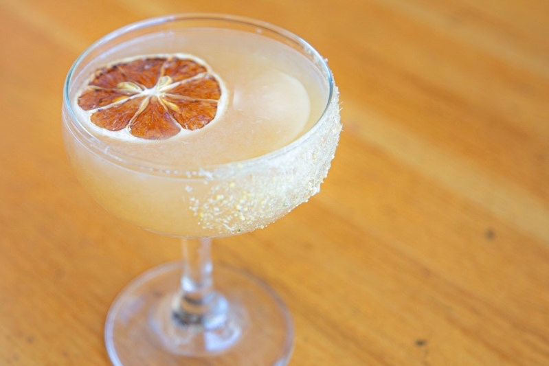 The Oakland cocktail, at Whisper Sisters, consists of tequila, mezcal, cinnamon, port, grapefruit, and banana. (Christopher Chung)