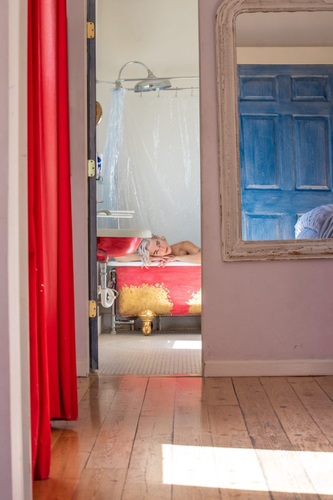 Rest your head in a red clawfoot tub at the Metro Hotel in Petaluma. (Courtesy of Metro Hotel & Cafe)