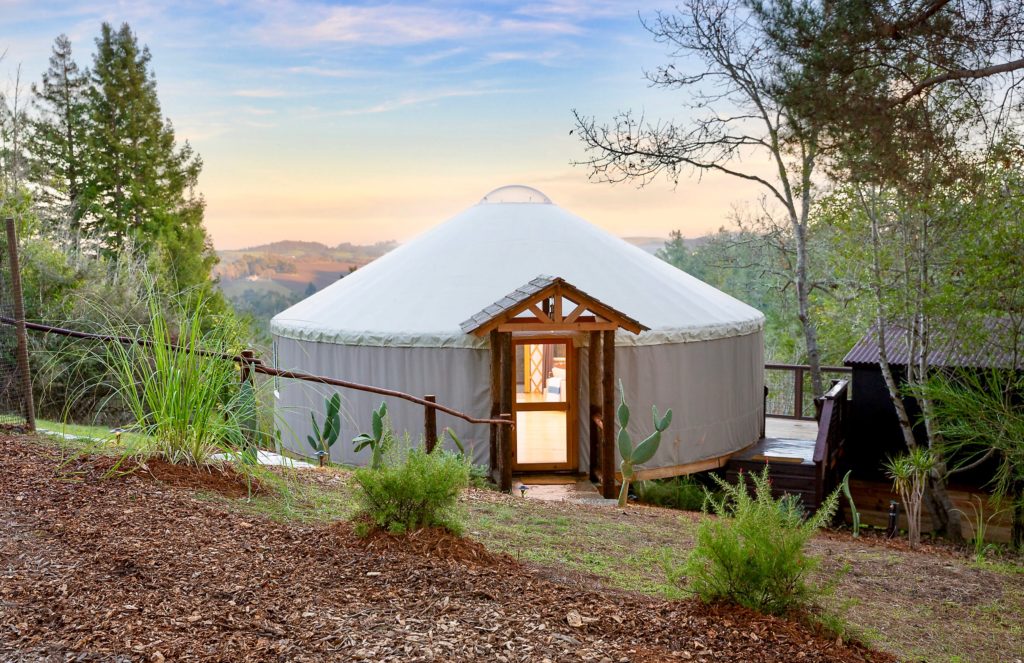 The Rising Moon Yurt, Sebastopol: Yurts are having a moment. This one, perched atop a Sebastopol hill, combines a close-to-nature experience with the comforts of a more upscale overnight stay. Inside the yurt are modern amenities such as a full kitchen, comfortable sleeping arrangements for two and chic midcentury-modern decor. There is AC/heating, wifi, bluetooth radio and a smart TV (with Apple TV and Netflix). A bath house is connected to the yurt and a sun deck offers sweeping views of one of Kendall Jackson's pinot noir vineyards. If you decide to venture outside your yurt compound, there are craft breweries, wineries and farm-to-table eateries conveniently located at the nearby Barlow market district. $208 per night. Book on Airbnb. More info here: therisingmoonyurt.com (Courtesy of The Rising Moon Yurt)
