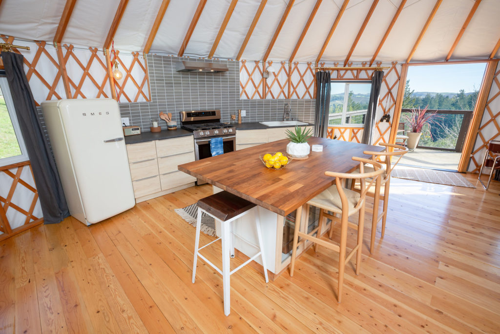 Kitchen area in The Rising Moon Yurt in Sebastopol. (Courtesy of The Rising Moon Yurt)