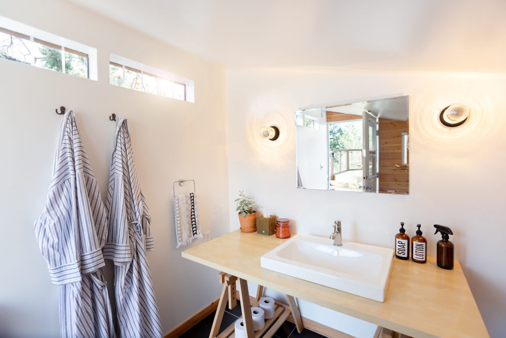 Inside the modern bath house at The Rising Moon Yurt in Sebastopol. (Courtesy of The Rising Moon Yurt)