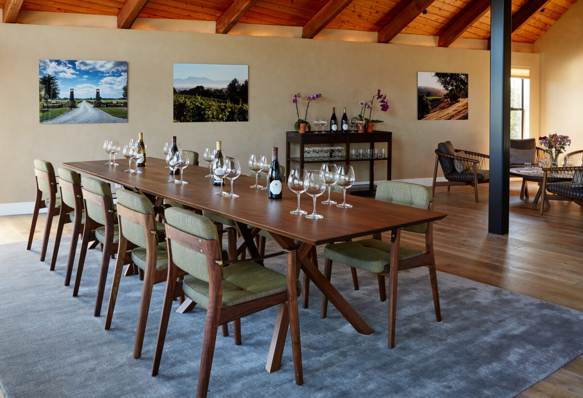 Curved leather lounge chairs and a ceiling-high hearth invite visitors to relax and get cozy by the fire. Who wants to leave when the Ranch House tasting room offers lovely views of the Martaella estate vineyard and seated sips of Benovia’s acclaimed single-vineyard Chardonnay and Pinot Noir? The winery is kicking off 2025 with a series of curated culinary events that will run throughout the year—bubbles and oysters, anyone?—so check the events calendar for updates.