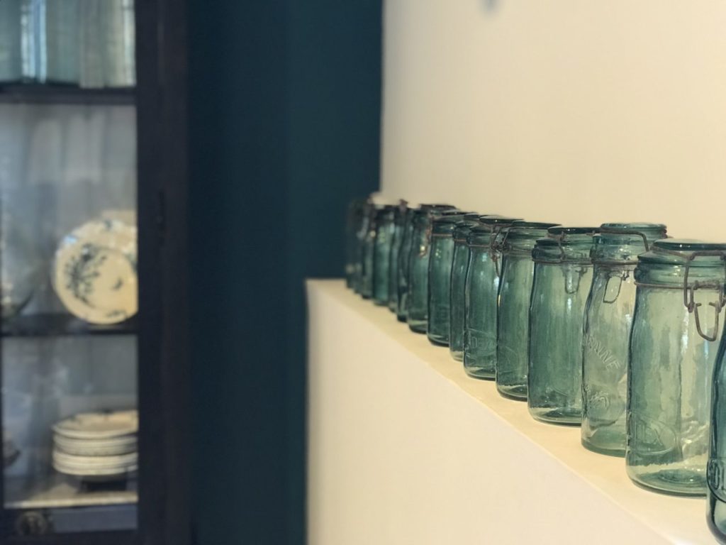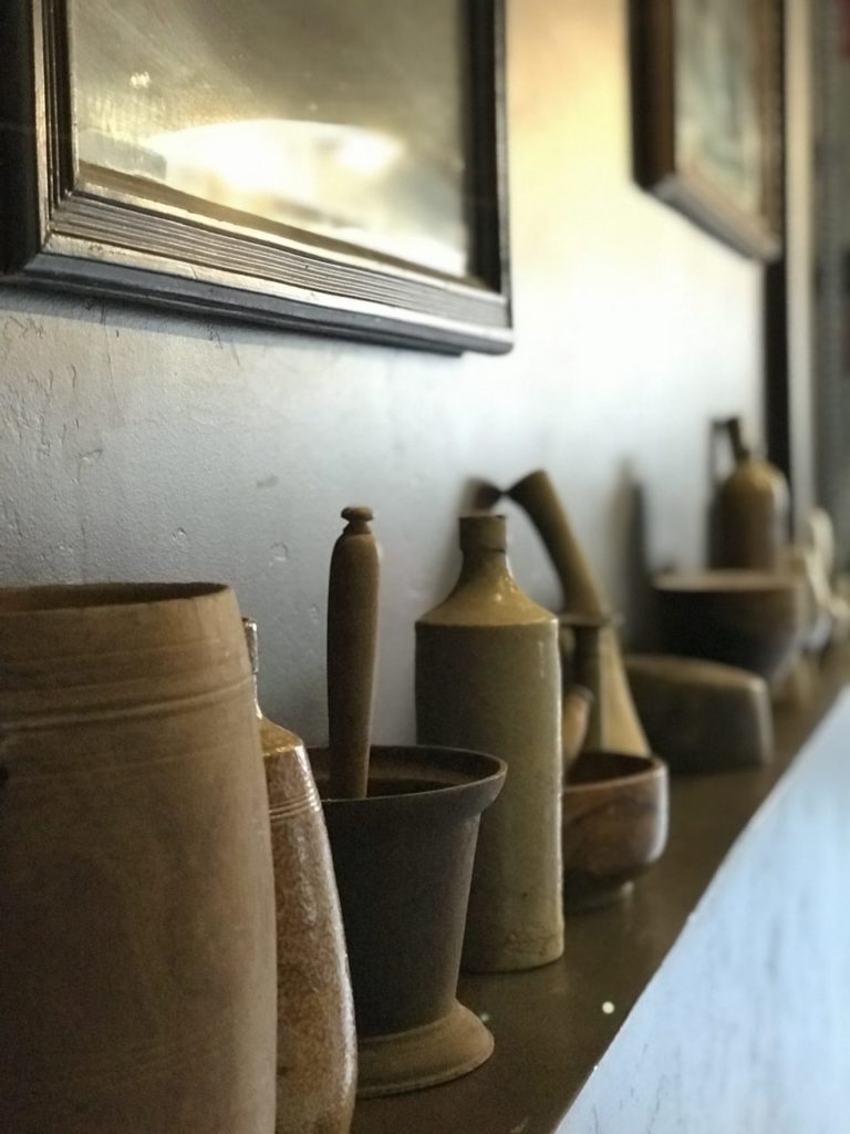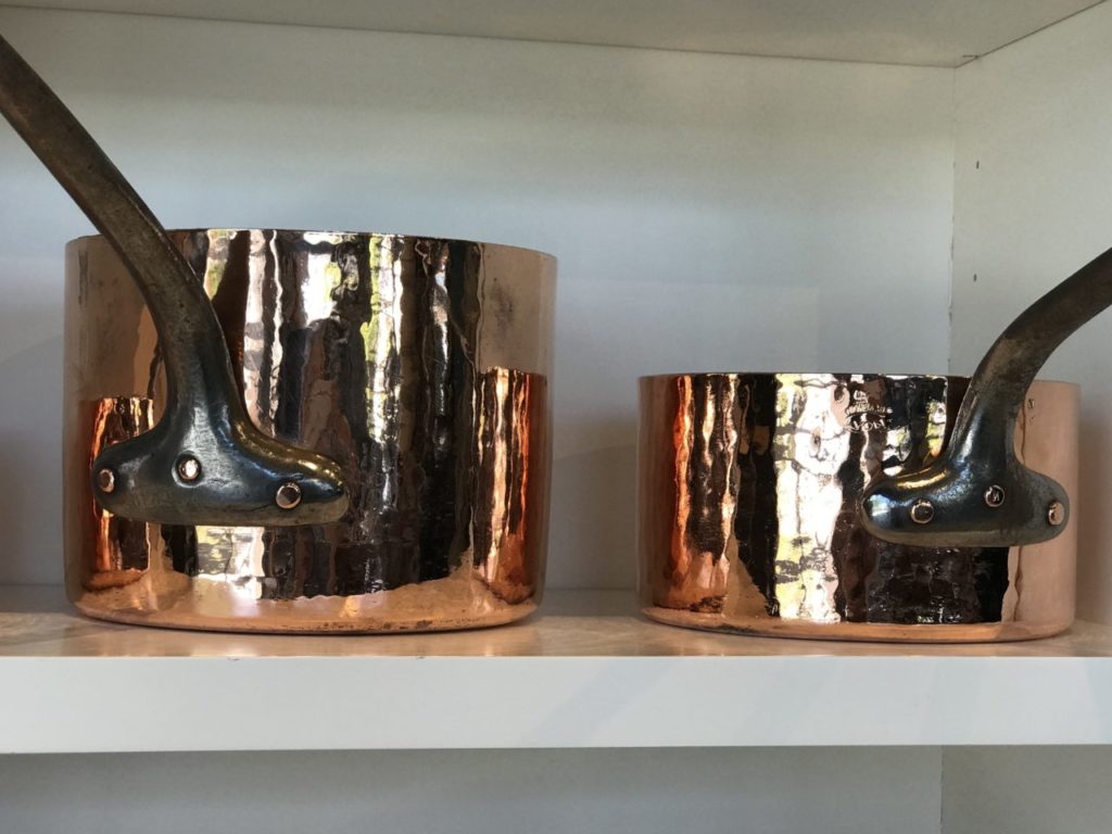 Elsie Green has all that plus glimmering oversized copper pots, silverware, earthenware and more – all vintage. Add in stemless cylindrical wine glasses, new, from Morocco and then ask yourself, “How did Elsie do that?”