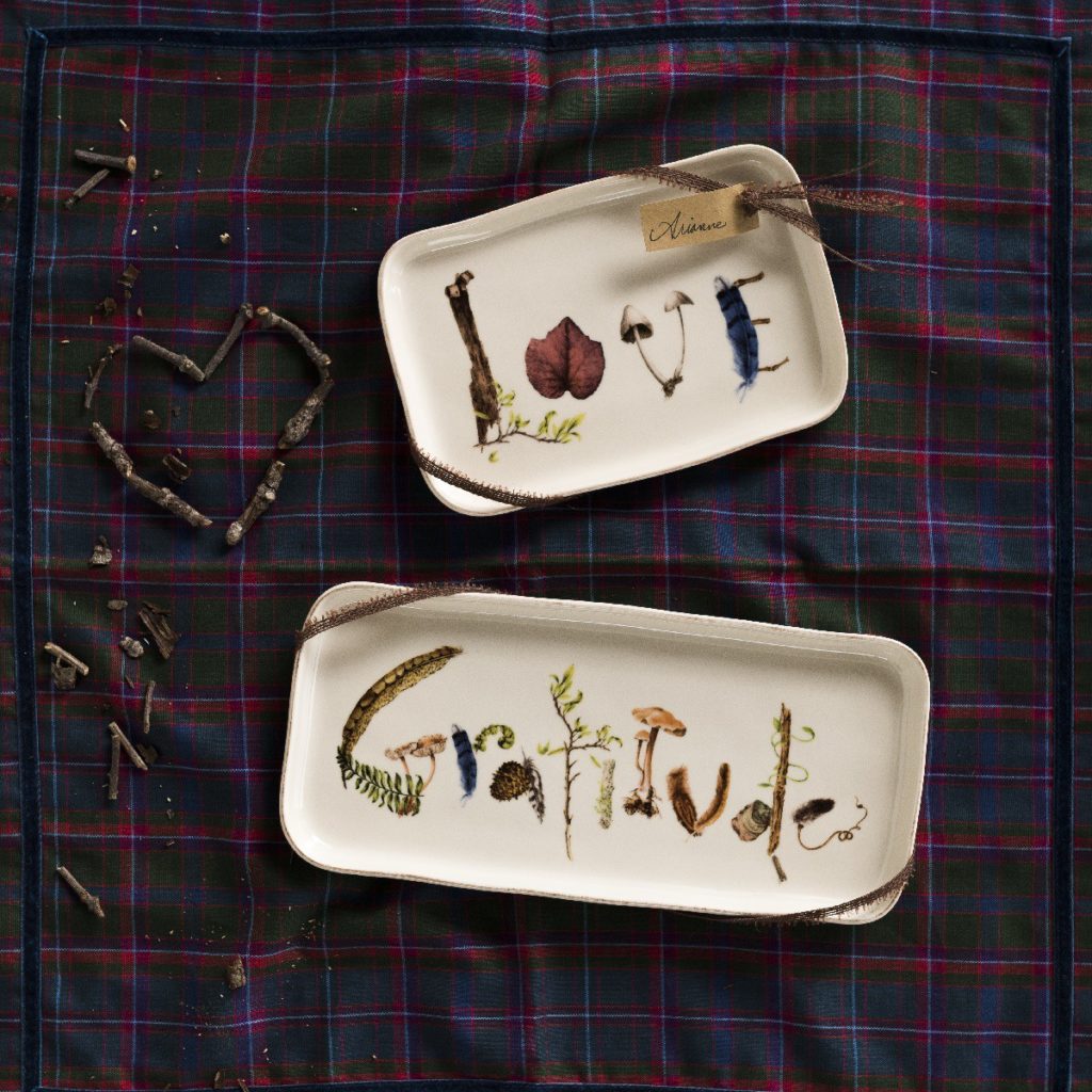 Foraging Fashion: Two great sentiments, pieced together with forest images, make for a great harvest time serving tray. $35 (love), $48 (family), i Leoni, 120 Kentucky St., Petaluma, 707- 762-9611, ileoni.com