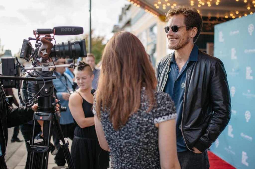 Actor Michael Shannon is interviewed on the red carpet before a screening of "The Shape of Water" during the Napa Valley Film Festival 2017. (Photo courtesy of Napa Valley Film Festival)