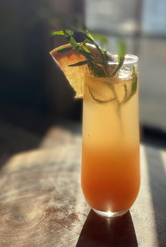 Morning Glory—Grapefruit Mimosa, Rocker Oysterfeller’s: Just plain and simple without all the fuss. Spanish Cava with fresh-squeezed grapefruit juice. 14415 Hwy. One, Valley Ford. 707-876-1983, rockeroysterfellers.com (Courtesy of Rocker Oysterfeller’s)