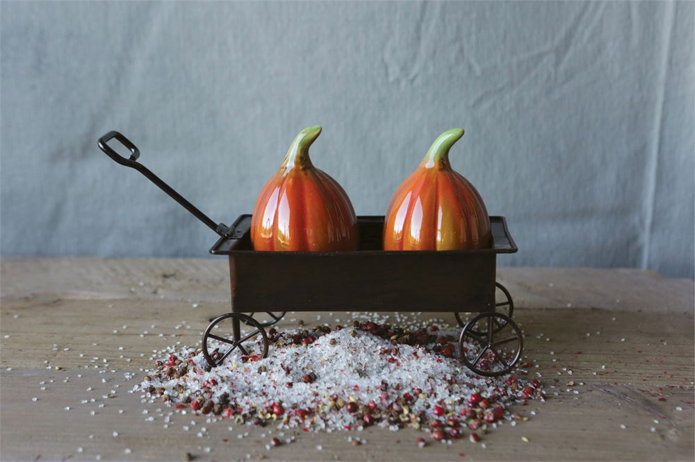 Seasoning in season: These sweet little salt and pepper pumpkins sit together in a wagon reminiscent of days at the pumpkin patch. $14, Fat Pilgrim, 20820 Broadway, Sonoma, 707-721-1287, fatpilgrim.com (courtesy photo)