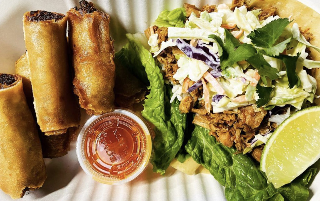 AdoboS N’ More: Filippino food that you won’t soon forget. Lumpia, adobo fries, bacon-wrapped crab, ado-bowl with pulled chicken or pork, rice, lumpia and coleslaw. Order online adobos-n-more.square.site. (Courtesy photo)
