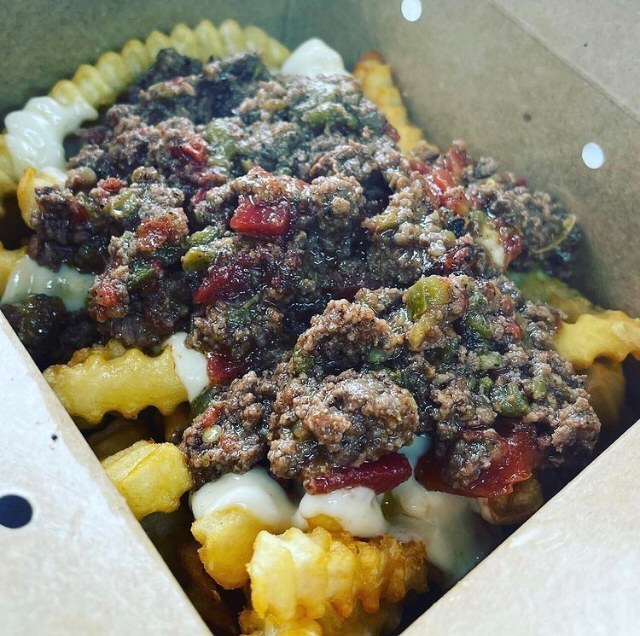 Barbecue Bourbon bacon meatloaf melt (beef/bison) with melty cheddar, bacon, bourbon bbq sauce and fried onions from Lila's Streetside Eats. (Courtesy photo)