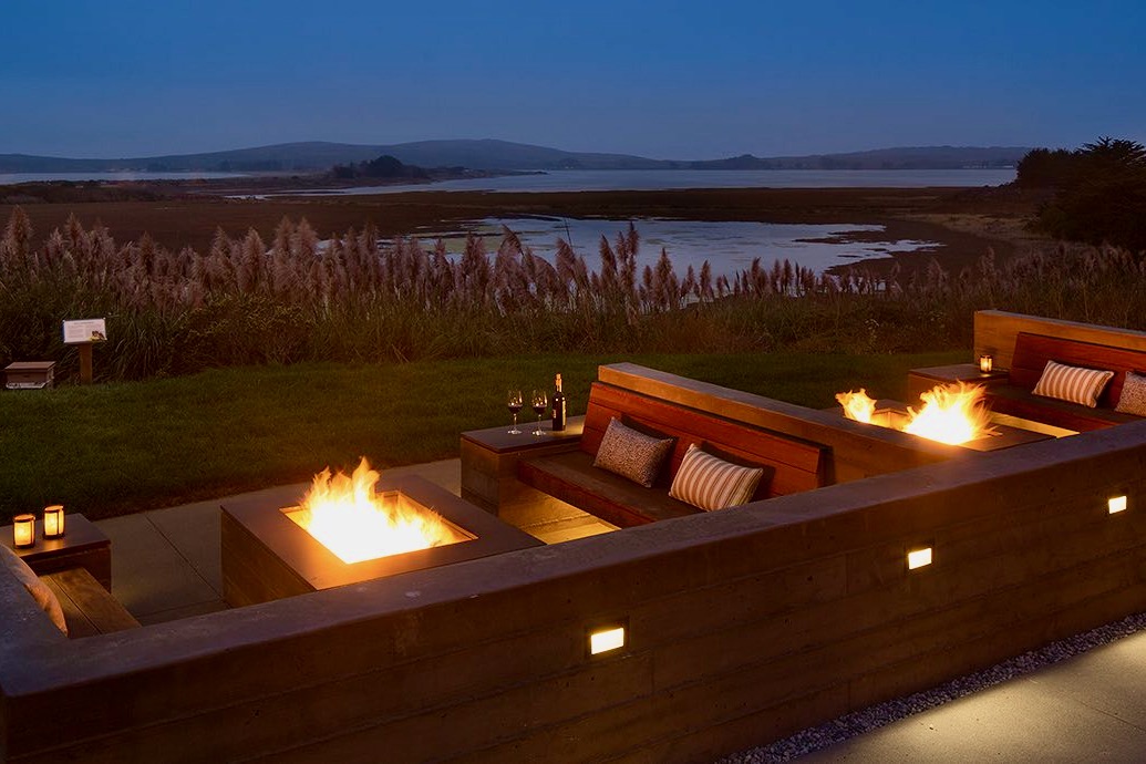 Drakes Fireside Lounge: The Fireside Lounge at the Lodge at Bodega Bay boasts scenic views of Bodega Head, Doran Beach and the Pacific Ocean at three outdoor fire pits outfitted with stylish lounge seating. The interior lounge is elegant and cozy, with wood beam ceilings, tasteful marine-inspired décor, and a bar crafted from a 300-year-old elm tree. 103 Coast Highway 1, Bodega Bay, 707-875-3525, drakesbodegabay.com (Lodge at Bodega Bay)