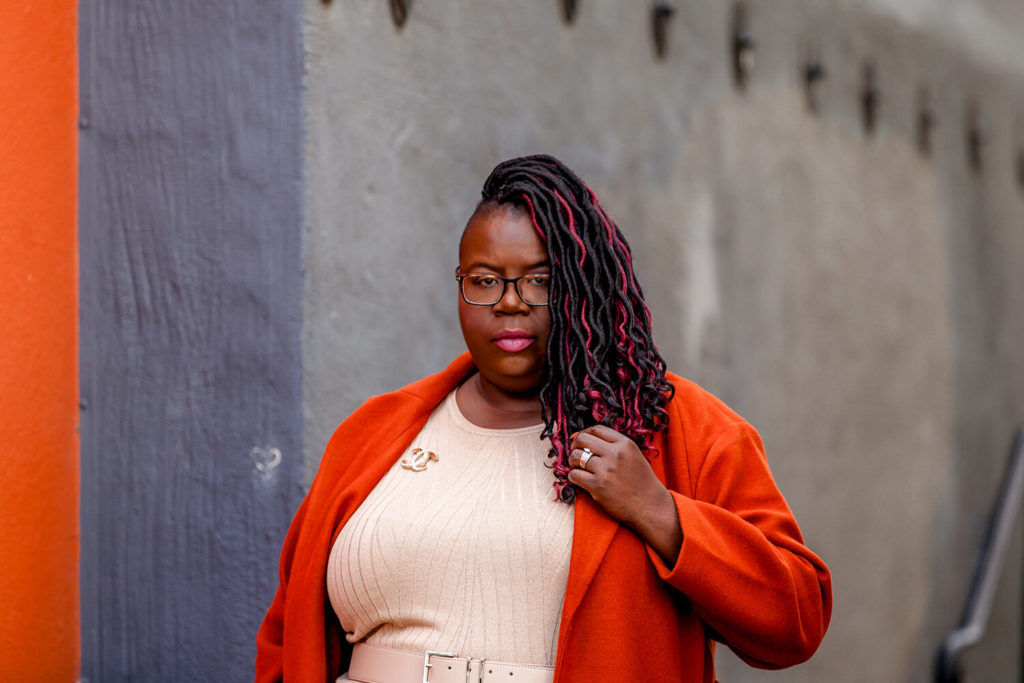 Anderson likes to style statement tees with blazer and heels—but she also likes to dress her advocacy in a less literal way. “If I’m dressed from head to toe in yellow, you can’t ignore me,” she says. Even outside of a climate of pandemic and protest, Anderson offers similar advice to her clients.